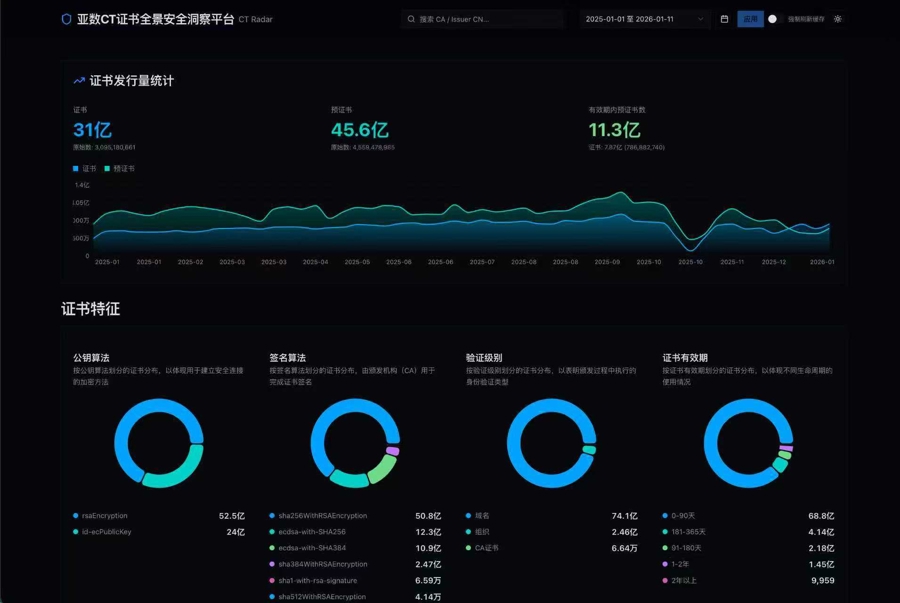 亚数信息科技开发的CT证书全景安全洞察平台。 图片来源:亚数信息科技