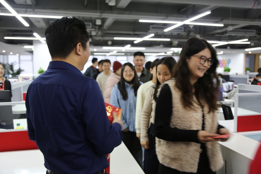 今天,亚数信息科技(上海)有限公司的员工们收到开工红包,开开心心开工。 图片来源:亚数信息科技