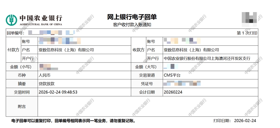 今天(2月24日)是马年春节的首个工作日,看着公司账户最新到账的一大笔贷款,亚数信息科技(上海)有限公司财务负责人沈予屏喜上眉梢:“春节开门红,这笔资金真是一场‘及时雨’!”